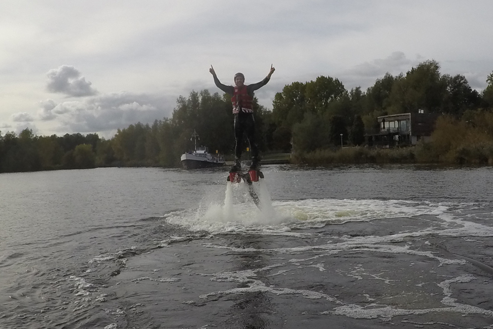 Het was een idyllische zondagmiddag toen ik besloot om mijn vaardigheden – of gebrek daaraan – in de kunst van het flyboarden te testen. Uitgedost in een wetsuit en een helm die me meer aan een crash-test dummy deed denken dan aan een toekomstige flyboarder, stapte ik in het onbekende. Het flyboard werd stevig aan mijn voeten geklonken en ik kreeg een ‘uitleg voor dummies’. “Iedereen kan na even oefenen blijven staan” – met die opbeurende garantie werd ik het ijzige water in geschopt.