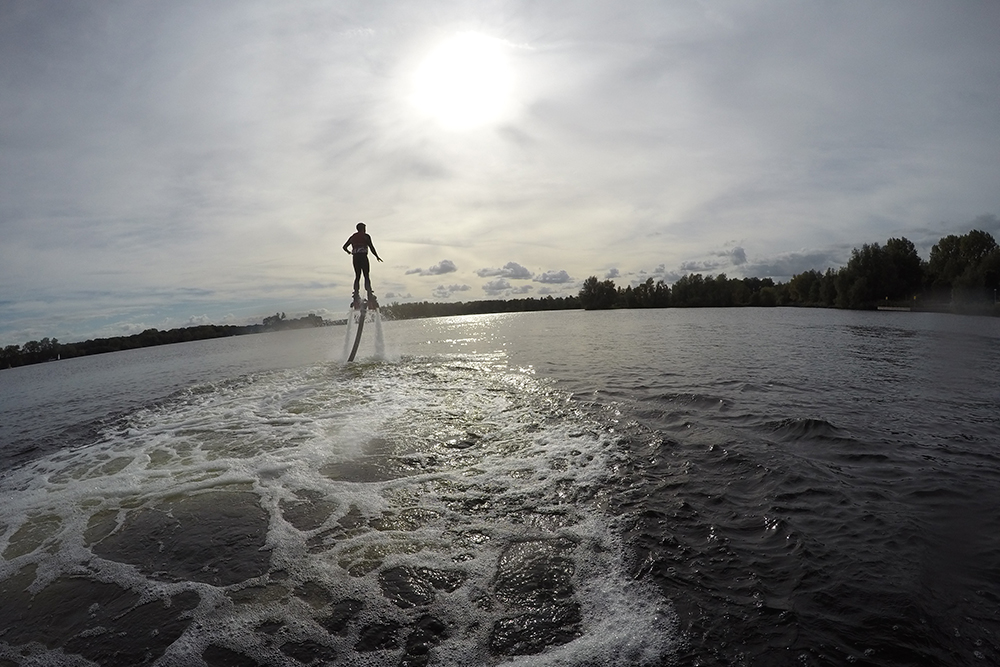 Het was een idyllische zondagmiddag toen ik besloot om mijn vaardigheden – of gebrek daaraan – in de kunst van het flyboarden te testen. Uitgedost in een wetsuit en een helm die me meer aan een crash-test dummy deed denken dan aan een toekomstige flyboarder, stapte ik in het onbekende. Het flyboard werd stevig aan mijn voeten geklonken en ik kreeg een ‘uitleg voor dummies’. “Iedereen kan na even oefenen blijven staan” – met die opbeurende garantie werd ik het ijzige water in geschopt.